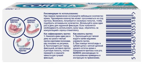 Необходимое количество крема наносят на протез, последний закрепляют и удерживают нажимом в течение нескольких секунд. После процедуры фиксации не следует принимать пищу на протяжении 5 мин. Крем можно наносить на влажные протезы.
